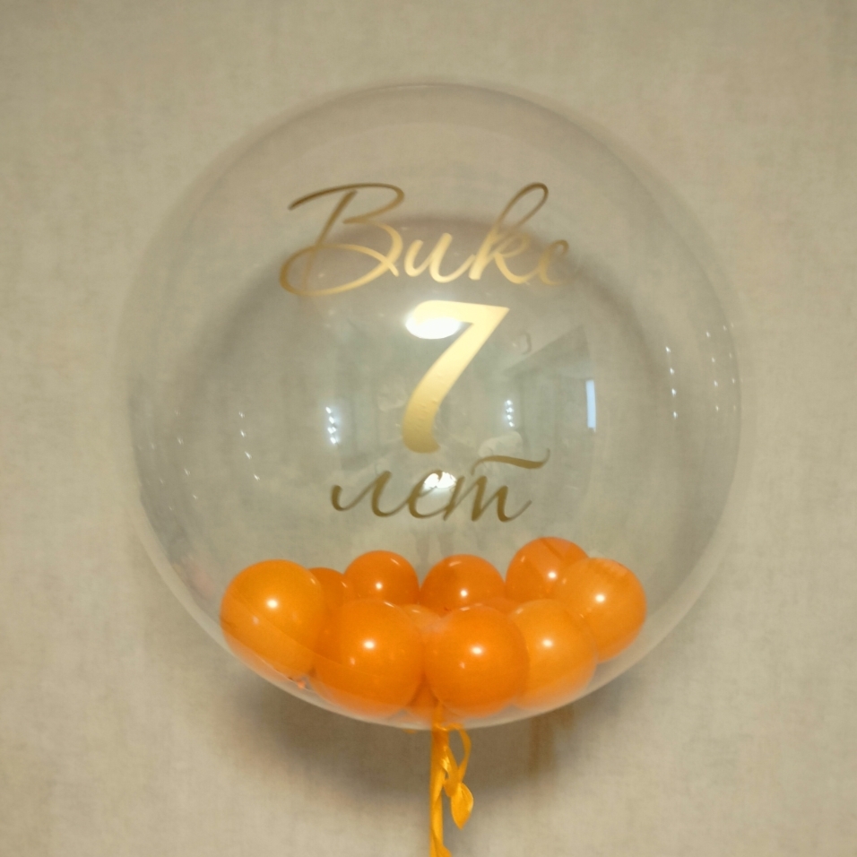 Прозрачный шар с индивидуальной надписью и шарами внутри надпись: “и цвет шаров можно поменять”.